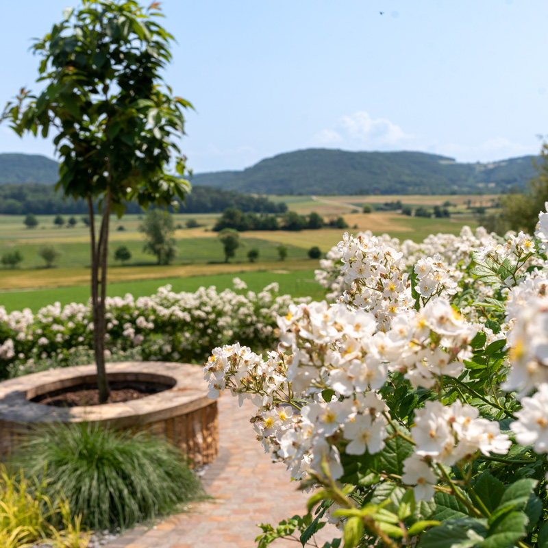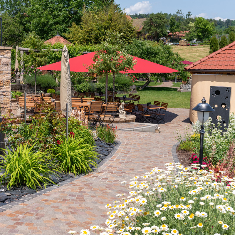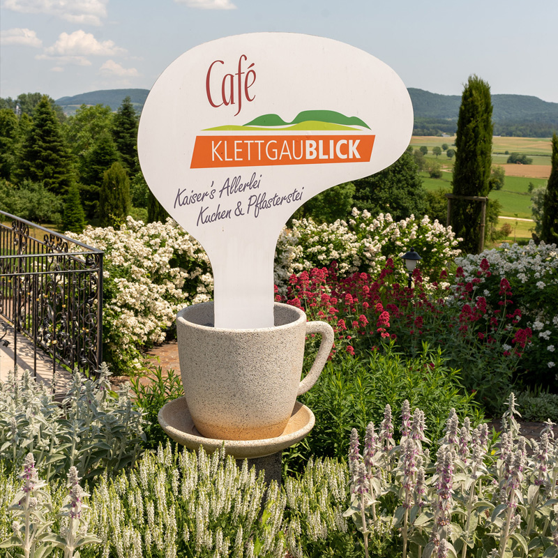 Genießen Sie den weitläufig angelegten Garten des Café Klettgaublick mit mehreren Sitzgelegenheiten, aber auch Nischen zum Zurückziehen.